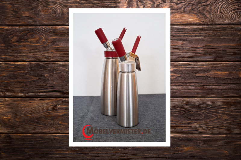 Sahnesyphon für Sprühsahne, mit drei Kartuschen/Sahnekapseln (mehr können dazu erworben werden), OHNE REINIGUNG, 3-Tages-Mietpeis