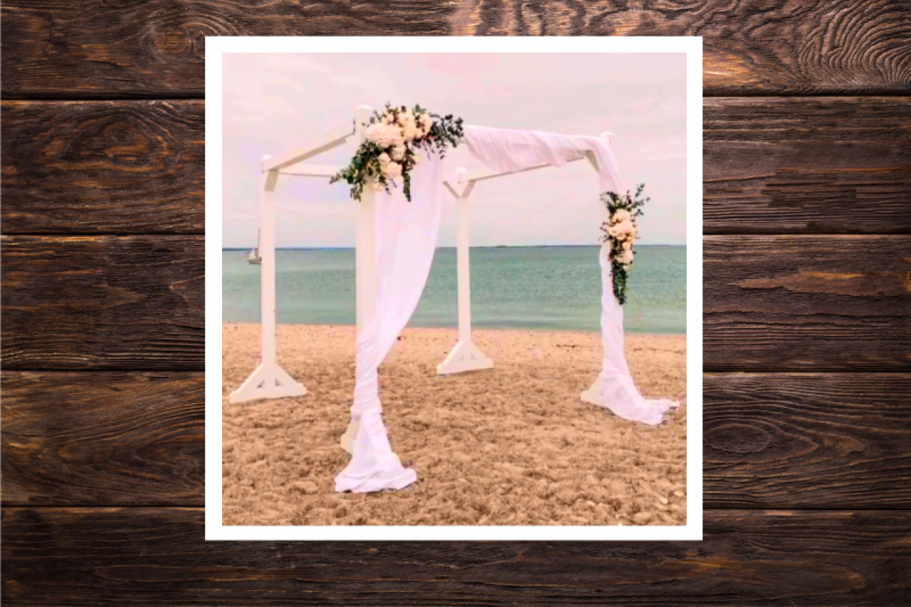 Traubogen (Bild zeigt Baldachin) aus Holz, weiß lackiert, 3-Teilig, freistehend, ohne Aufbau, ohne Deko, AUCH ALS BALDACHIN ERHÄLTLICH (2 Bögen mit Verbindern), Miete 3 Tage