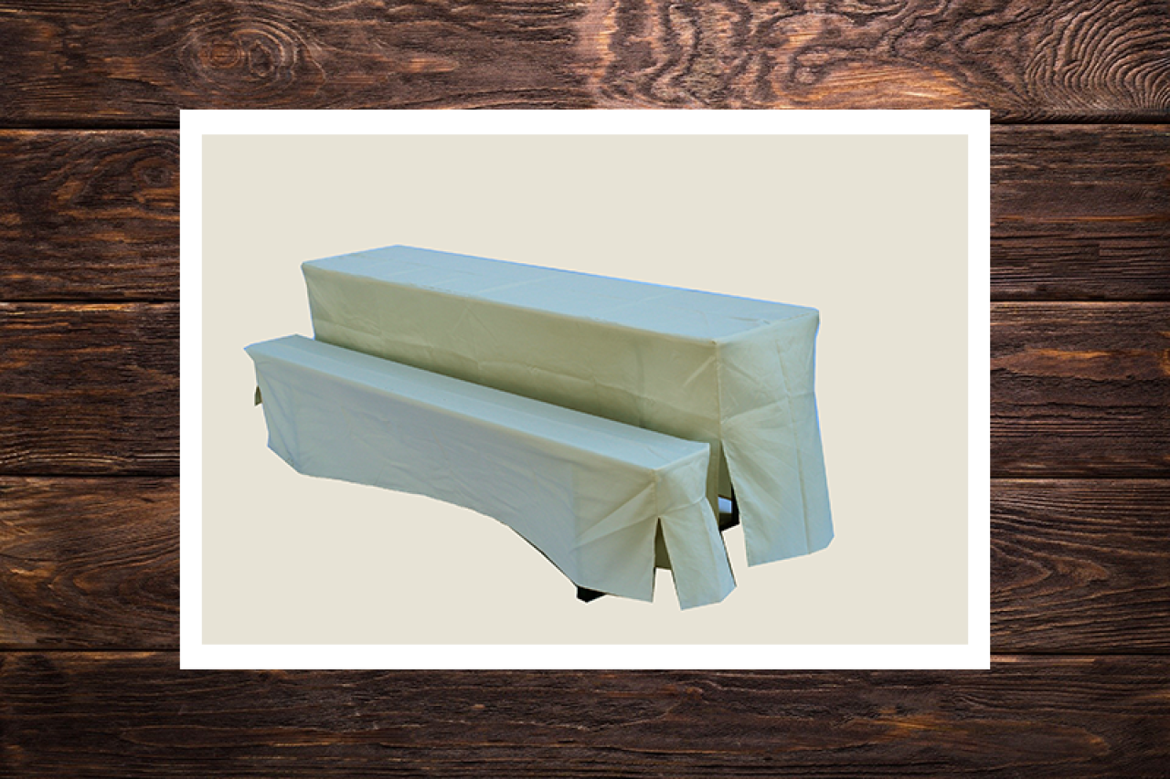 Bierzelthussen für 1 Tisch (220x50) & 2 Bänke (220x25) in cremé