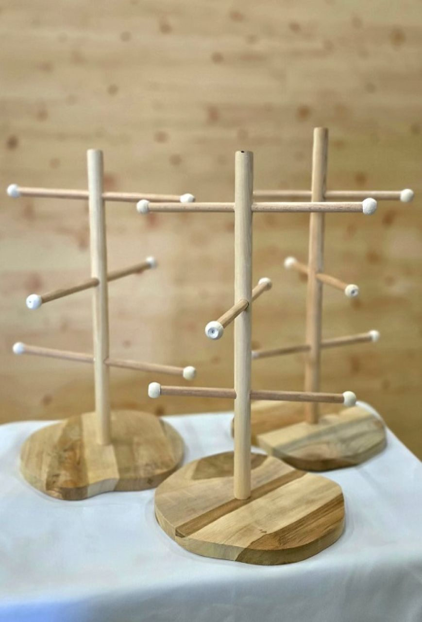 Holzgestell zum Anhängen von Brezeln