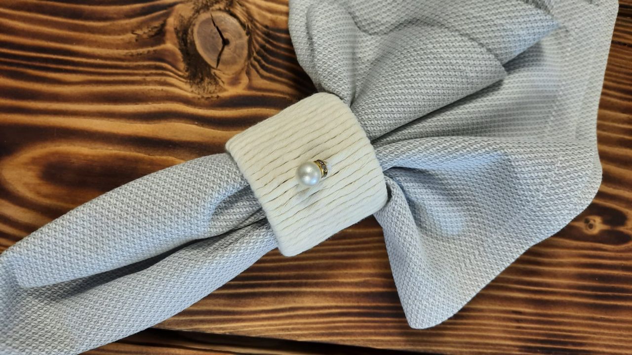 Serviettenring aus gewickeltem Baumwollband mit einem Perlenanhänger, ohne Reinigung, 3-Tages-Miete