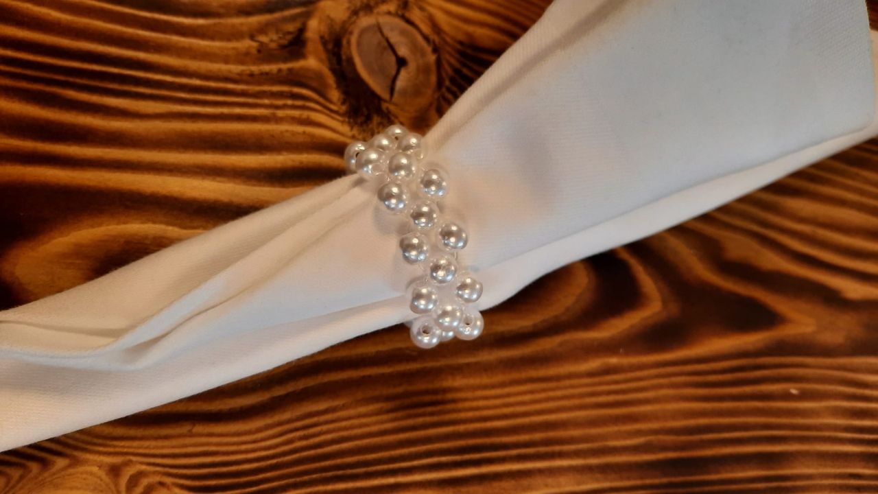 Serviettenring Gummizug mit weißen Perlen, Miete ohne Reinigung, 3-Tages-Miete